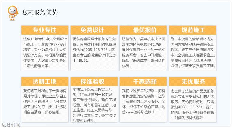 ![]() | 中央空調(diào)系統(tǒng)保修一年 主要安裝配件輔材保修三年 中央空調(diào)整機保修兩年 中央空調(diào)主機壓縮機保修三年 售后服務響應時間市內(nèi)8小時內(nèi)到位 |